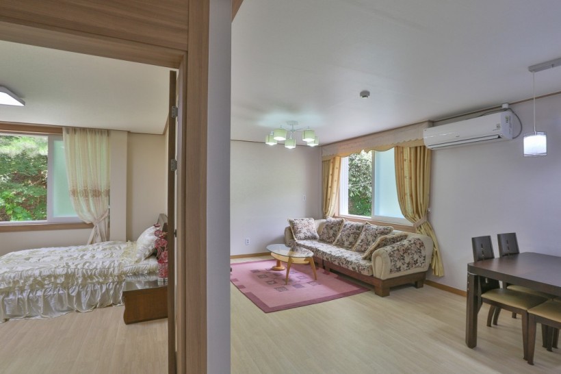 쉼터 본문 / 방 정보 객실명 형태(스타일) 크기 인원(기준/최대) 쉼터 거실/침대방/주방/욕실 17평 4/5 가격 정보 비수기 성수기 추가요금 주중 주말 주중 주말 150,000원 200,000원 150,000원 200,000원 20,000원 시설안내 TV, 에어컨, 쇼파, 헤어 드라이기, 선풍기, 주방조리기구, 냉장고, 전기밥솥, 인덕션, 전자렌지, 커피포트, 식기류일체, 침구류(침대포함), 비데, 샴푸, 린스, 수건, 치약, 티슈, 6인용밥상